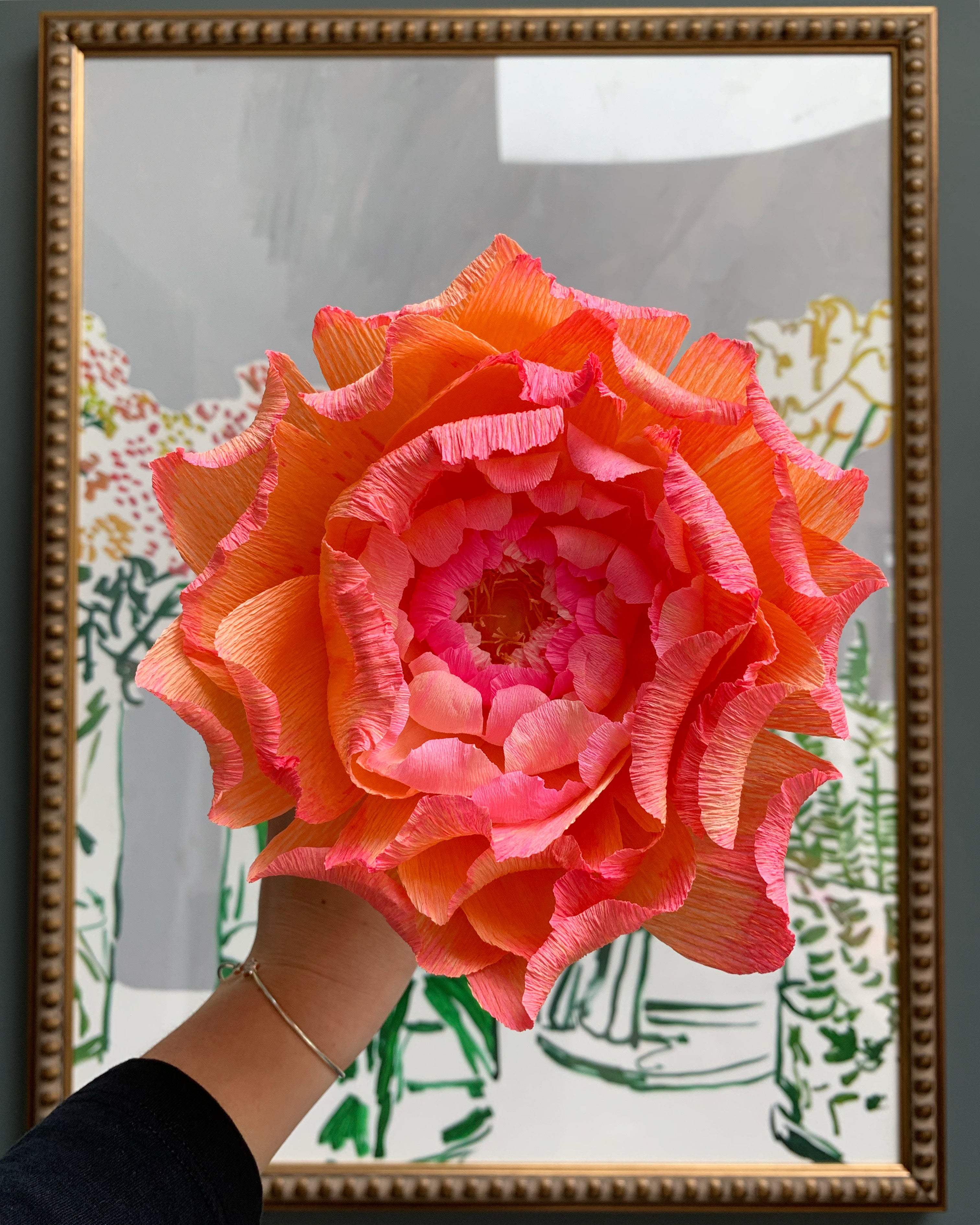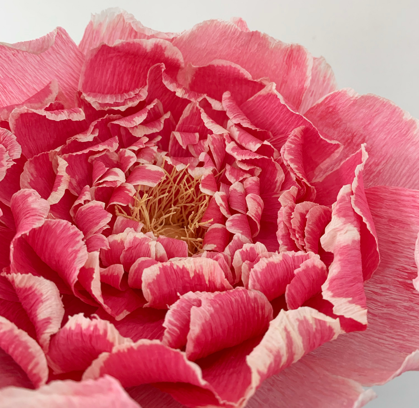 Every piece is a unique one of a kind work of art, intricately made from hand-dyed crepe paper.